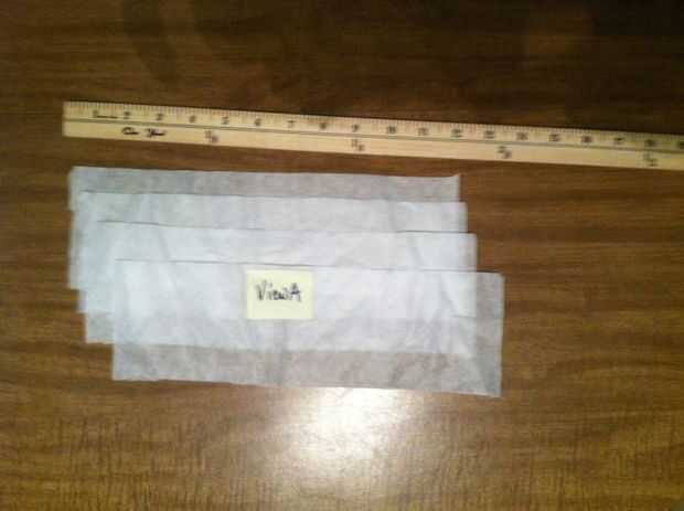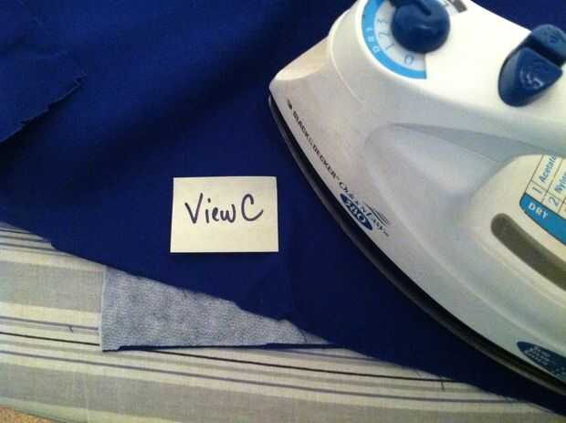 Hierro a las piezas de la parte inferior de cada totalizador cuerpo, coincidencia de borde inferior al borde inferior y el emparejar lado adhesivo para invertir de lado impreso (vista B). Consejo: utilice una plancha seca y no aplicarlo directamente a la interfaz; Baje la parte superior de la tela como un paño (vista C).