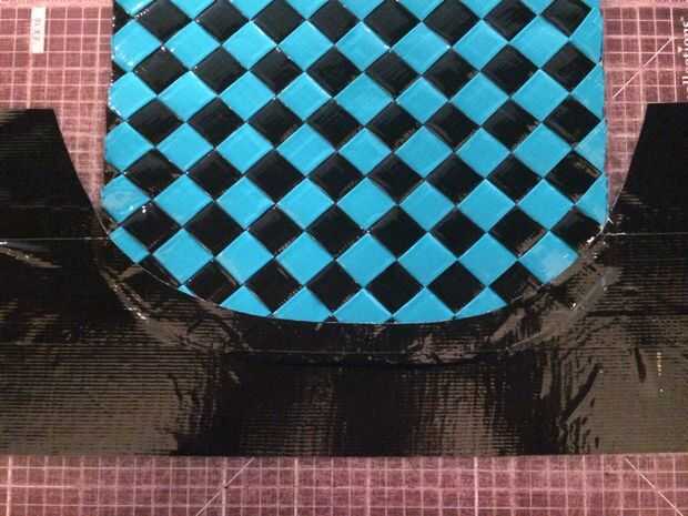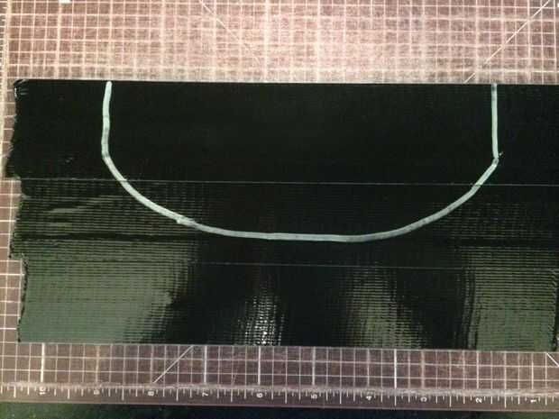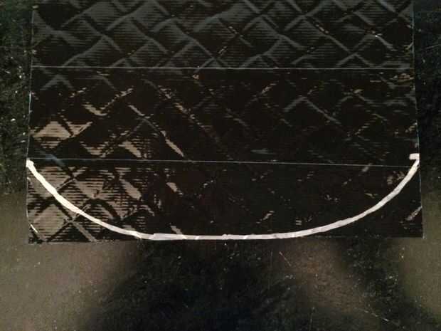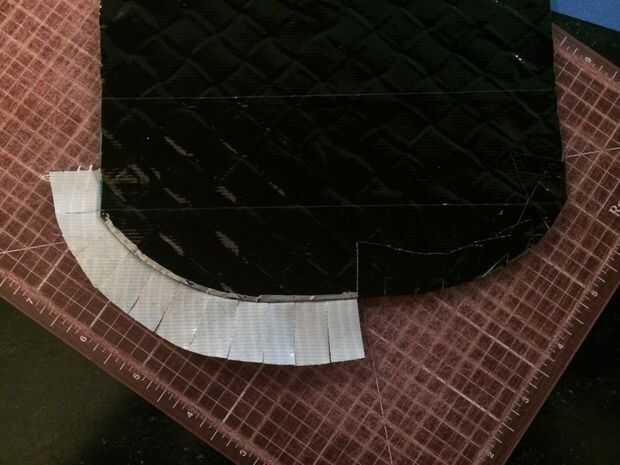 Entonces hice la aleta redondeada por un patrón de dibujo y de corte hacia fuera. Entonces, remontar el borde redondeado en una hoja de cinta del conducto y recorte. Después que puso en el borde redondeado y corte ranuras de 1/2 pulgada todo el camino alrededor. Luego, doble las ranuras.