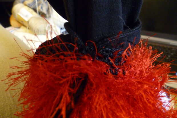 La parte exterior de la guarnición para el bolso del perno y coser en su lugar.