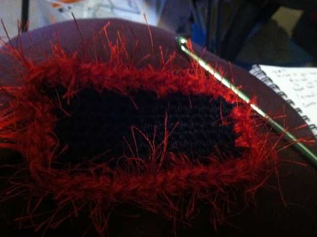 Fila 1: SC 16 todo al principio, SC 6 abajo a la izquierda, 16 SC a través del fondo, SC 6 a la derecha. No gire (44 total de SC).