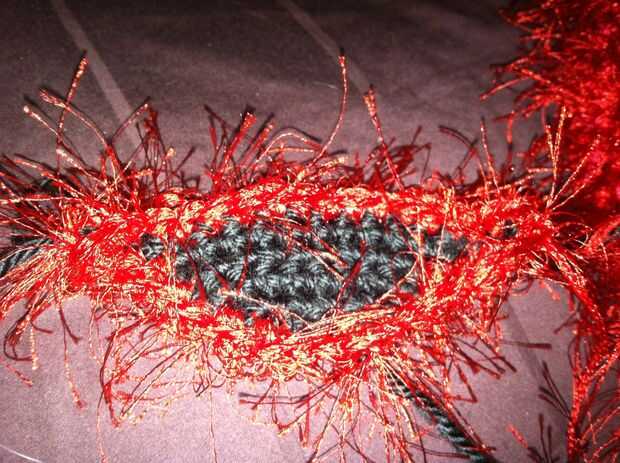 Con 1 hebra de simplemente el hilado borroso, conéctelo a la 3 CH de lado derecho de la boca. SC de CH1 en cada una de las 3 cadenas, SC uniformemente sobre la parte superior de la boca, 3 SC encima de CH 3, 3 SC en la parte inferior de 3 CH, SC uniformemente por el fondo de la boca, 3 SC en la parte inferior de la CH 3 y conectar a 1 SC y acabar.