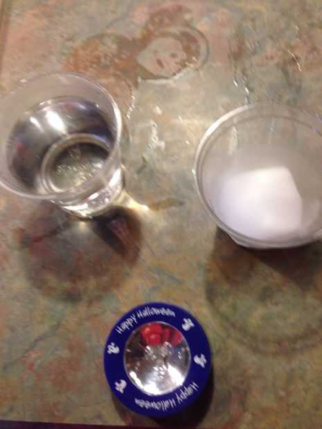 Lugar bajo boo bolso de vez en cuando añadir un poco más caliente para agua caliente en vaso de plástico de hielo seco.