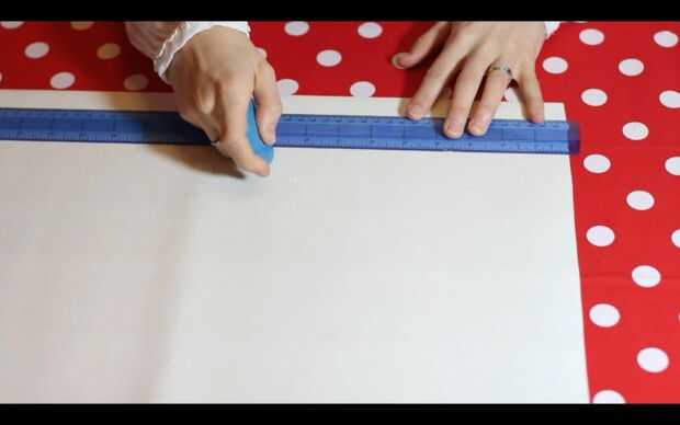 Voltee a la tela, mida y marque donde va a cortar. Mina fue de 9" de ancho y 19" de largo.