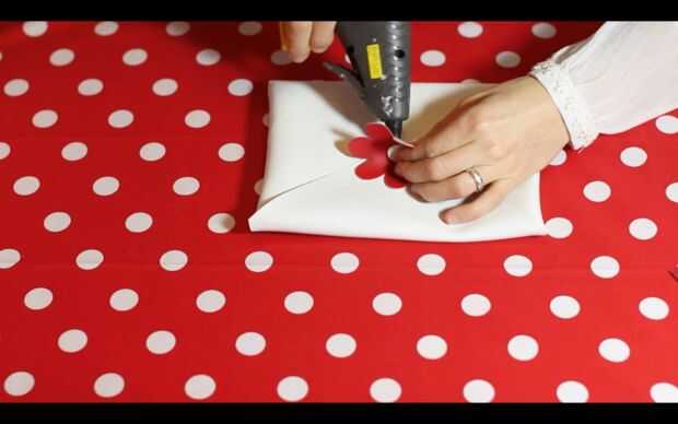 dibujar y cortar una forma de la flor y colocar en la parte inferior de la aleta con la pistola encoladora.
