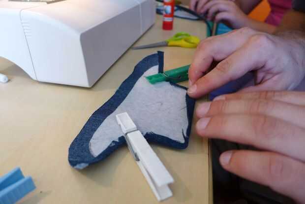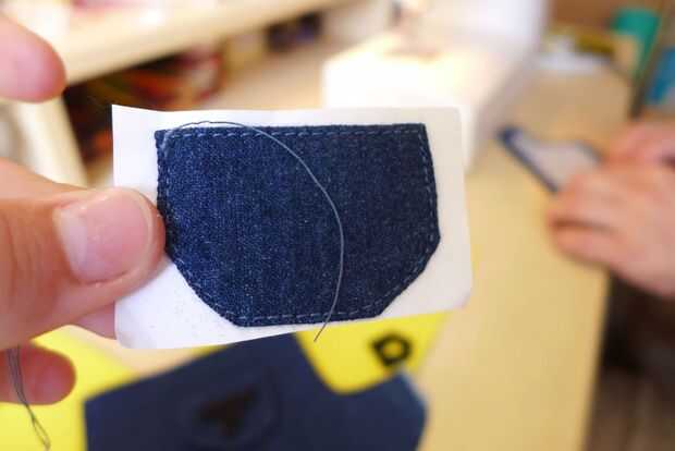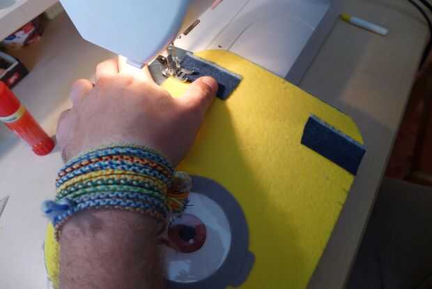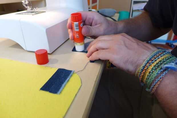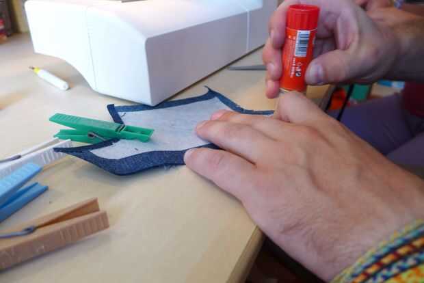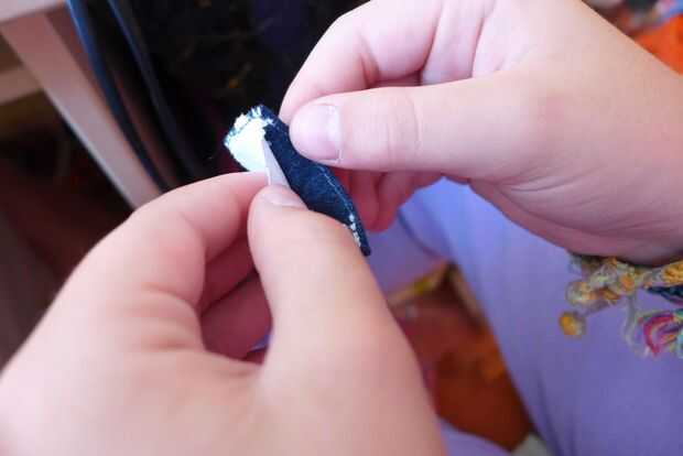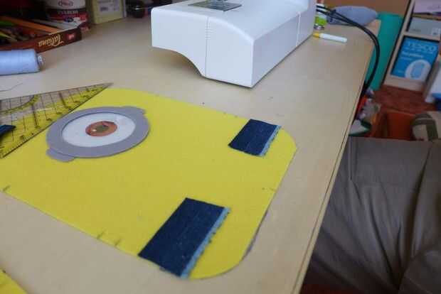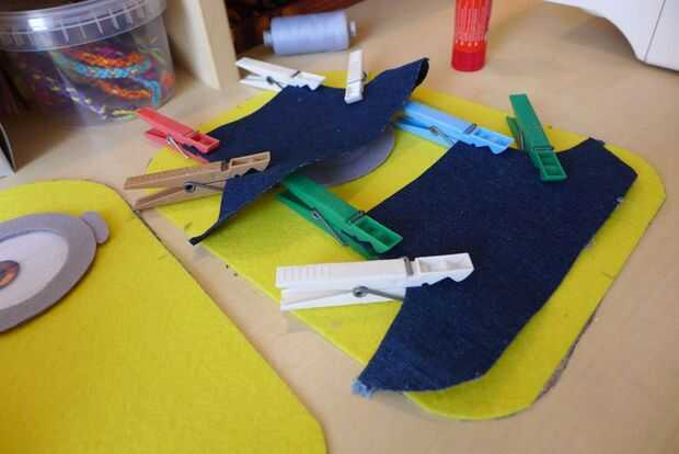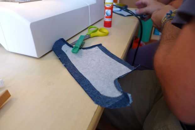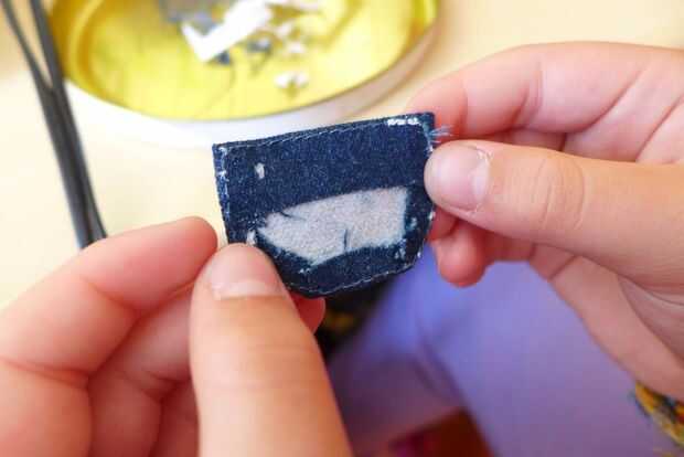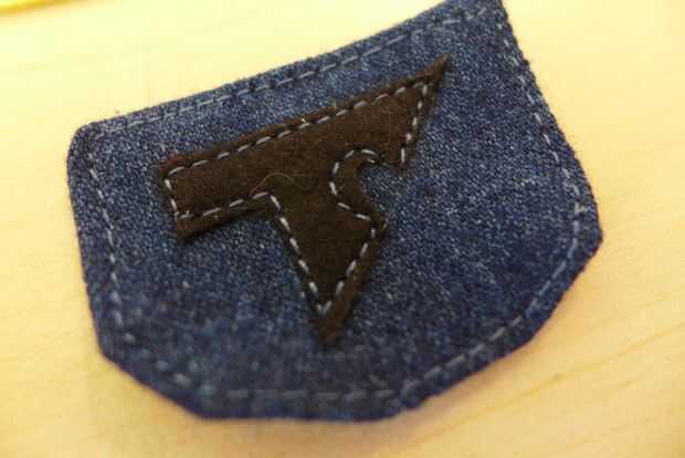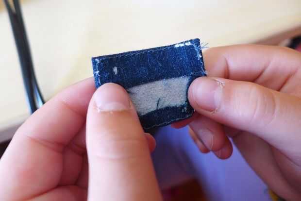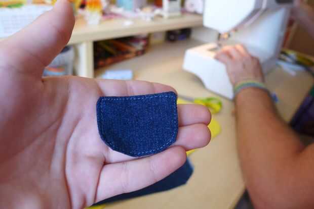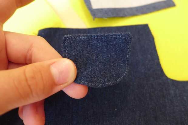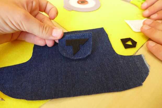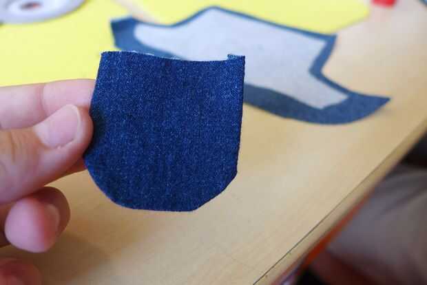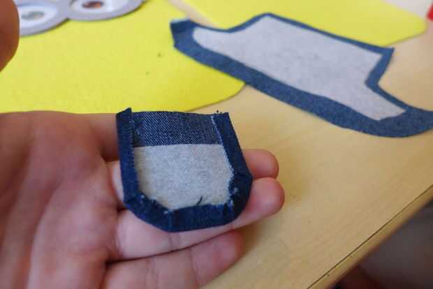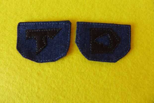 Tela pegamento blanco es el tamaño final. Doblar, pegar y coser márgenes. Preparar el bolsillo, doble y márgenes del pegamento, pegamento en el pedazo de papel y coserlo. Retire el papel. Fieltro del negro iniciales T y D representa Tanya y Danielle, dibujar tu propia letra ;) Coser los rectángulos pequeños del dril de algodón, cubierta con jeans y coserlas. Bolsillo se utiliza en el paso siguiente.