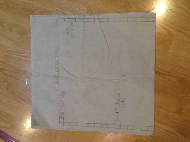 como no-coser como sea posible, así las medidas de una pulgada son las ranuras para la cuerda de arte recorrer. Las cuatro pulgadas en la parte superior son refuerzos para los cordones.