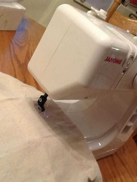 Doblar las parte superior dos pulgadas de cada mitad de la bolsa y coserlas a través. Dejar los extremos abiertos.