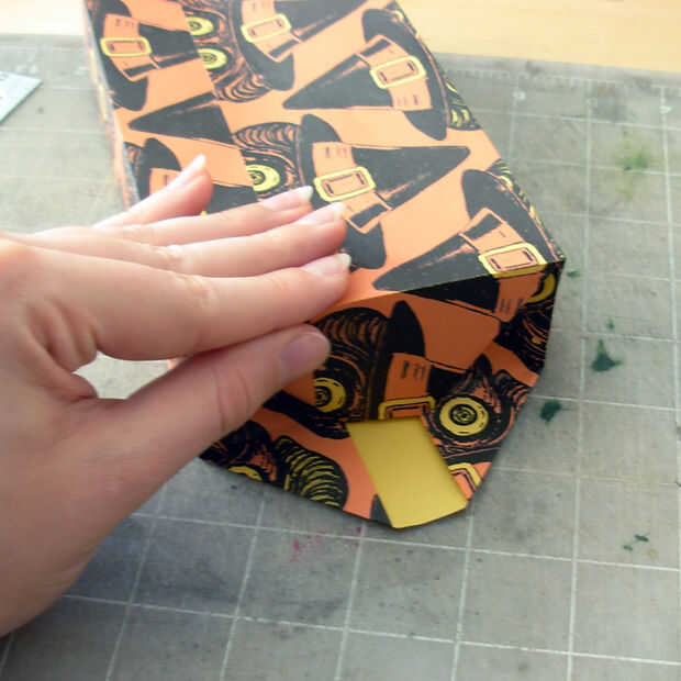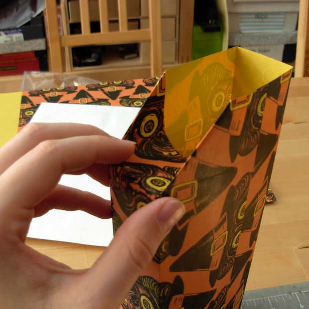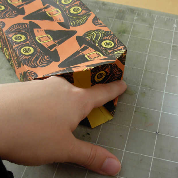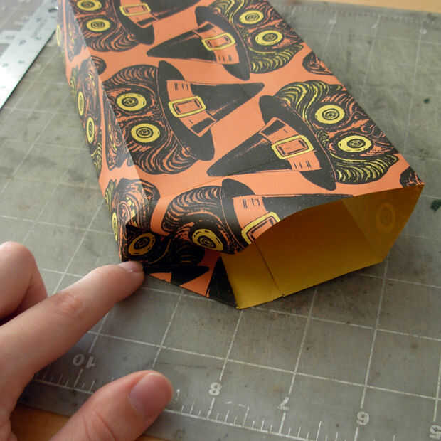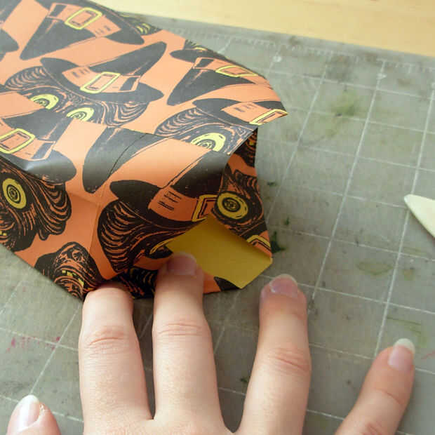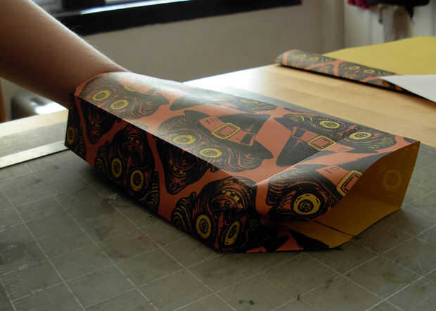 La manera para formar el fondo de la bolsa es pretender que envuelve un regalo invisible. Si usted tiene gran dificultad con este paso, usted puede construir su bolso alrededor de una pequeña caja. Sin embargo, no debería ser demasiado difícil y va mejorar con la práctica.