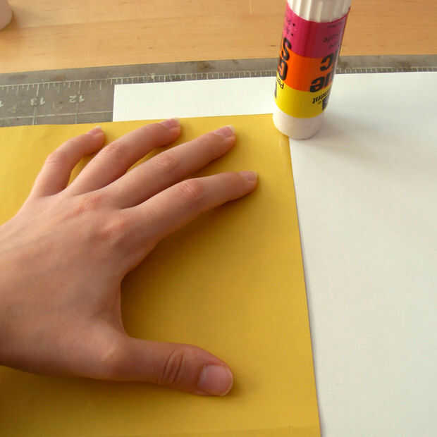 Tirón de bolso-haciendo papel cara abajo sobre el papel de desecho. Ejecute el pegamento a lo largo del borde derecho del fabricación de bolsa de papel. Asegúrese de tomar el pegamento hasta el borde y las esquinas. Por esta razón están haciendo esto sobre un trozo de papel de desecho. Esta manera, no tendrá que preocuparse de conseguir el pegamento sobre la mesa.