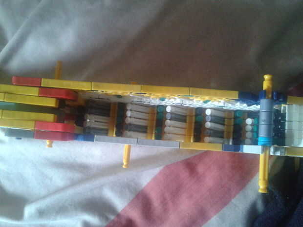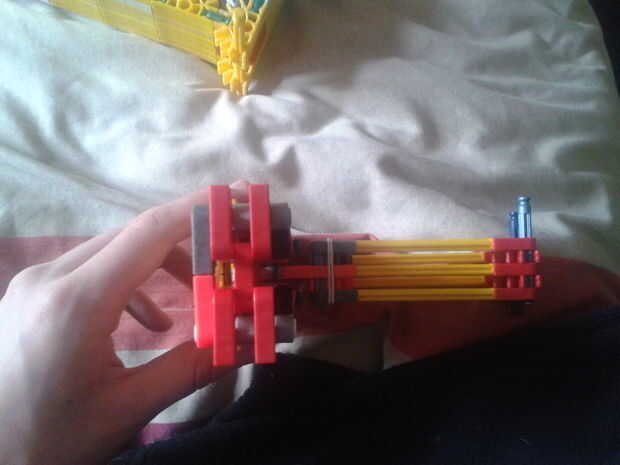 Su pasado un tiempo, pero esta publicado este concepto en diciembre, y finalmente he llegado a un punto donde me siento feliz de liberar lo que tengo ahora! Así, mejoras. Ya no es un mag-empujador colgando parte de trasera de la pistola, y el mag es removible. Eso está estupendo. Lamentablemente, a partir de ahora, sólo puede soportar 2 munición en cada mag, como el taks perno un poco justo de espacio. Aún así, es un concepto fresco y único, que también se siente muy bonito que se carga en la pistola. Lamentablemente, el mag es gruesas, decir que stock de armas tuvieron que ser hechas 7 capas, 5 capas que es un problema ya que ahora tenemos una carga de barras amarillo sobresale todo el stock. No es demasiado agradable para el titular. La mitad superior de la pistola está ahora 5 capas gruesas y acomoda un mecanismo de trinquete que funciona muy bien, aunque la estética es un poco arruinada por el acoplamiento desgarbado al gatillo en el extremo de la pistola. Había considerado hacer el top 3 capas, guardar una parte de peso y piezas, pero no quiero sacrificar fuerza, que sería necesario, como la carraca, donde la tensión de las bandas se lleva a cabo deben ser tan fuertemente conectado al punto de anclaje en la parte delantera.