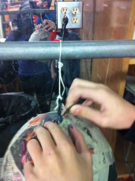 Usted puede preguntarse, ¿cuál es el punto de hacer estallar el globo? ¿No como va a causar ningún daño? Bien, puede. El globo cada vez más pequeño puede causar el periódico de encoger, eventualmente ajuste periódico y nadie quiere. Tomar una caja abrelatas cuchillo y arma blanca en el lazo del globo. Hacer un gran agujero en el globo. Si es posible, asegúrese de que la cáscara del periódico se puede apoyar por el balón en el interior por el momento. Por eso, me refiero a Asegúrese que la cuerda con el globo adjuntas puede todavía la cáscara y no caen el globo y la cadena. Su pero no es necesario, salta el paso siguiente.