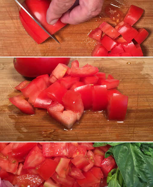 Paso 3: Cortar en cubitos el tomate Roma