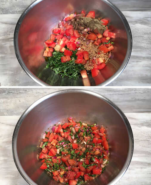 porque vivo en una familia italiana, disfruto muchos alimentos italianos como pizza, espaguetis y albóndigas y cosas como bruschetta.  Esta es una de las recetas de brushetta favorito de mi mamá que ella hace a menudo, y es un gran snack o aperitivo