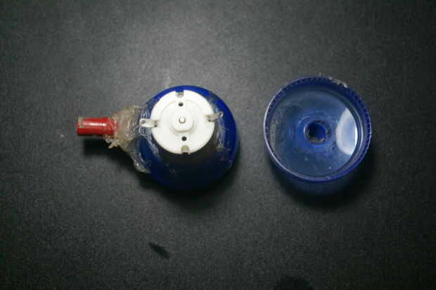 En primer lugar hacer una perforación fina en la parte inferior de la jarra. Debe ser precisamente en el centro. Esto es para que el eje del motor ir a través. Asegúrese de que cabe en la pequeña perforación antes de pasar.