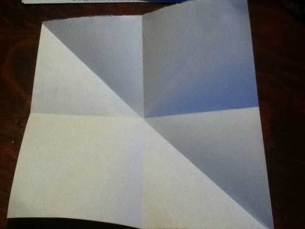 Haz un pice cuadrado de papel y doblar por la mitad ambas maneras. También doble de esquina a esquina.