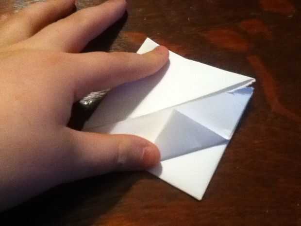 vamos a hacer una bomba de papel!Fuentes:Hoja de papel cuadradaPaso 1: doblar Plegar la parte inferior para crear un triángulo.Desplegarlo y hacer lo mismo para las otras esquinas, ábrala otra vez y verás una x en el medio.Luego doblar por la mitad.P