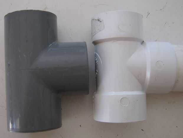 Funciona mucho mejor y fácil para el émbolo viajar a la parte superior, he conectado un pic con las 2 piezas T al lado de la gris es la versión de hardware de la piscina y el blanco es un accesorio de plomería residuos al aire libre general.