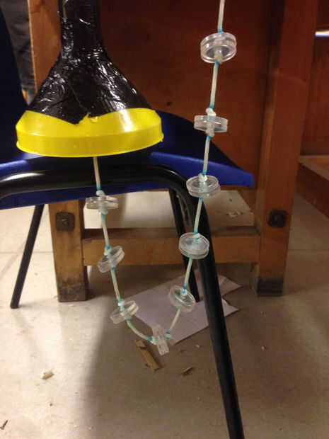 Verdad es que puede hacer los discos de un montón de cosas. Hemos probado madera inicialmente pero se hincha como se moja y hay un montón de fricción con la tubería por lo que no recomendamos. Al final hemos colocado con acrílico. Cortamos los discos en un cortador láser con un agujero de 5mm en el centro de la cuerda ir a través. 5mm es un buen diámetro para el tipo de cuerda que debería utilizar, cadena comunes realmente empapado y tiene una fuerza extensible que es peor que Heskey es en tirar en el blanco. Espesor suficiente cuerda también significa que sólo necesita un nudo para sujetar los discos en su lugar como que no se deslizará a través del orificio. Utilizamos una mezcla de acrílico grueso de 3 y 4 mm, esto fue por accidente aunque pero hace poca diferencia por algo más que tuvimos que alterar en los discos.