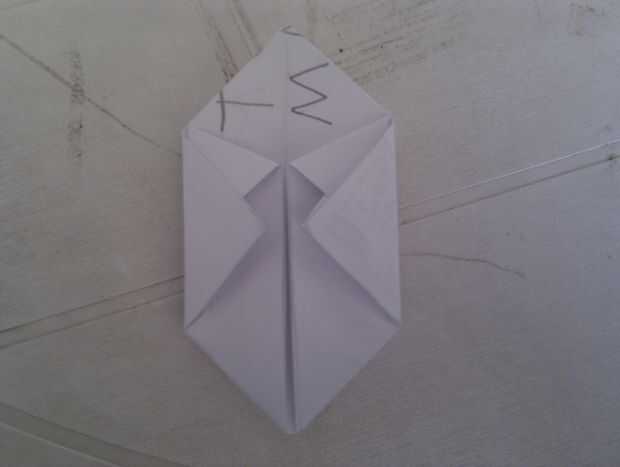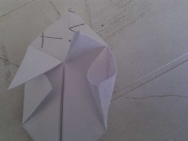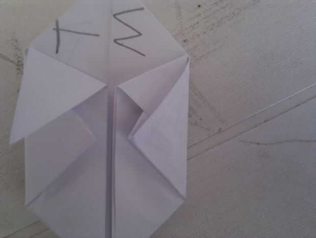 Tendrá que meter las esquinas superiores en los pliegues realizados en el último paso.