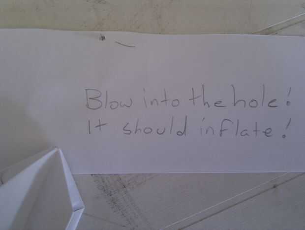 Tienes que soplar en este agujero y debe inflarse como en las fotos.