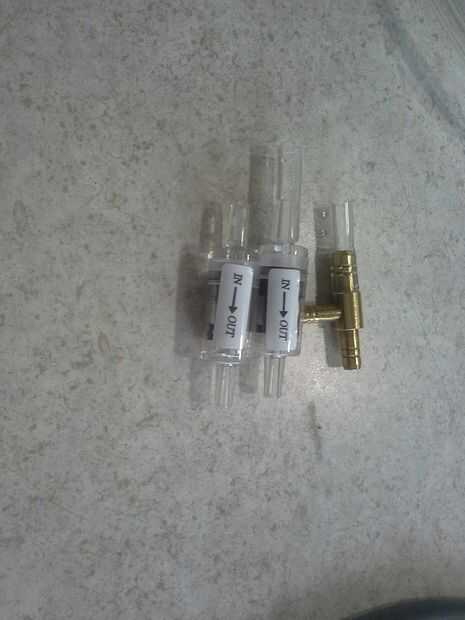 Las válvulas de retención, manguera de aire y ajuste de T se puede encontrar en cualquier lugar que vende suministros de acuario.