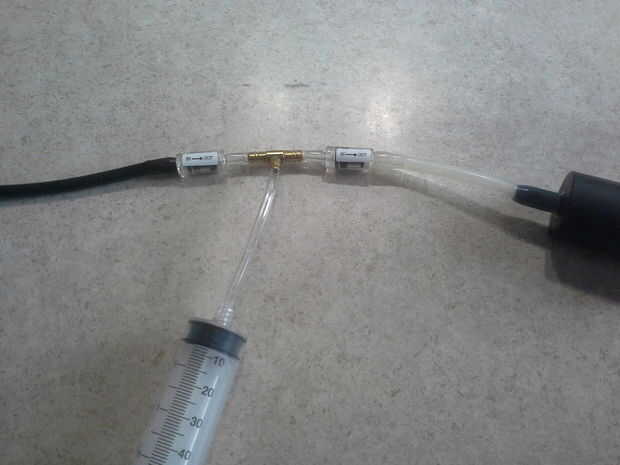 Usé dos tubos de diferente color para distinquish desde el lado sucio y limpio. El lado negro es la entrada y la salida el lado claro.