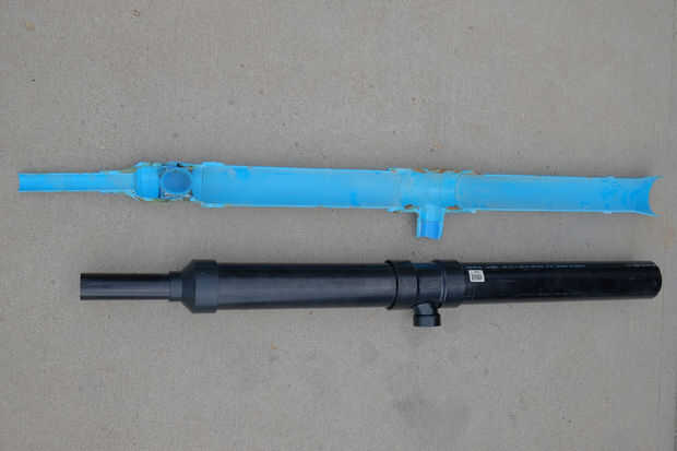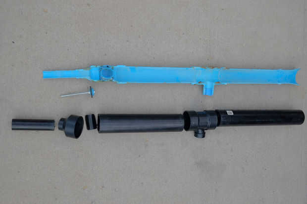 Cubierta de PVC de 65mm Ø. Válvula de entrada. Tapón de la válvula para mantener la válvula en posición.