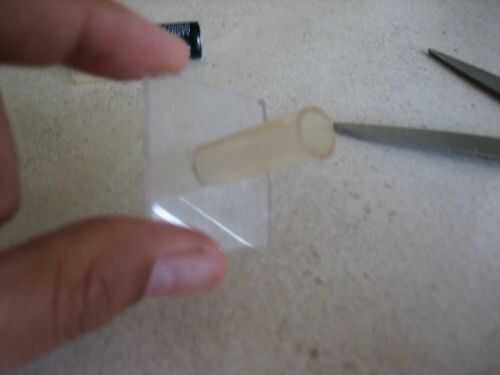 Pegamento el tubo de salida hacia el lado que no interfiere con el impulsor y listo...