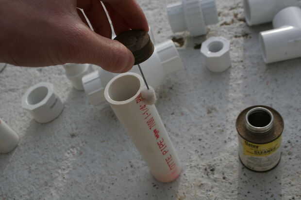 Para aquellos de ustedes que no han construido cosas del PVC en el pasado, no es terriblemente difícil. La imprimación sirve para limpiar un poco el PVC y consigue listo para realmente con el cemento. El cemento mantiene todo junto.