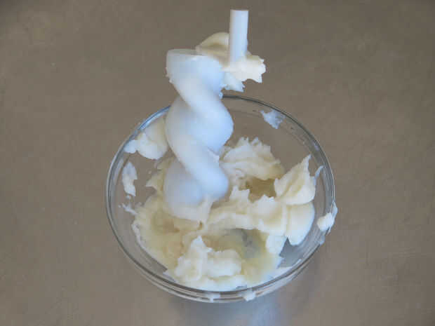 Puré de puré de patatas también trabajó. Aunque me encontré con la primera edición con esta bomba. Es una bomba manual que bombea hacia arriba. Esto significa que el material se empuja alimentar en la entrada de la bomba (parte inferior). El agua tiene no hay problema porque fluye fácilmente y rellenar las cavidades. Pero no puré de puré de patatas. Lo que significa que es difícil conseguir un flujo continuo sin alimentar la bomba con más material. También con puré de las cosas fueron más complicadas. Es por eso que ni siquiera trataba de cacahuate. Saber con certeza que iba a ser difícil de limpiar.
