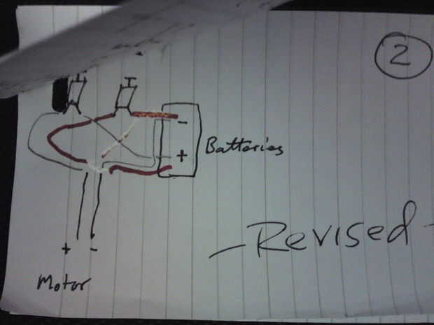 El botón del interruptor 1 alimentar al motor más lógico, por significado, ha-terminal de la batería ir al - motor terminal y la terminal de la batería va al interruptor de la vuelta en a + la + terminal del motor - para que el motor girará en sentido horario.