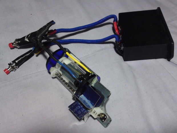El 2 º botón del interruptor se cableado como frente el 1er interruptor para que el motor, a su vez, se gira hacia la izquierda, ahí mi bomba dando la posibilidad de llenar o vaciar y líquido que pretendo utilizar en él!