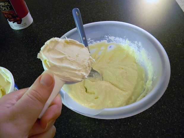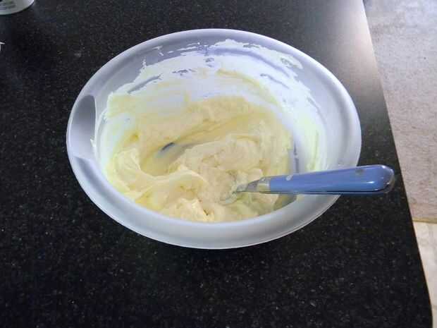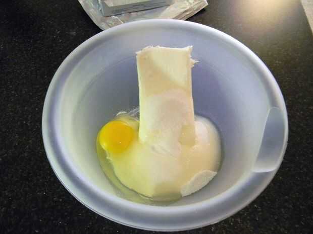 ** Nota: Asegúrese de que el queso crema es muy suave antes de comenzar; de lo contrario puede ser difícil de mezclar suavemente. Yo aconsejaría dejarlo reposar sobre el mostrador un rato en lugar de microondas, como el microondas siempre parece derretirse un poco.