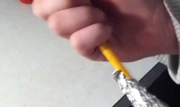 Coloque la bola de ping-pong en el centro de la hoja de lata y comienzan a rap la lámina alrededor de la bola pero no completamente. Poner el lápiz en la bola de pingpong y dar el resto de la hoja alrededor del lápiz. Saque el lápiz. Trate de asegurarse de que esté apretado para que el humo salga solamente el tubo antes de sacar el lápiz de het. Mantenga una llama debajo de la bola hasta que comience a fumar, luego hacer lo que quieras. Podría utilizar el mismo método con más bolas de humo duradero más largo.