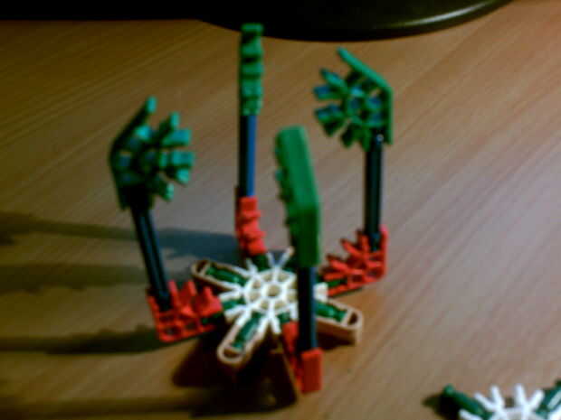 hacer las patas con rojo 1 1 azul varilla y 1 conector verde luego hacen la base con 4 clips tan que actúan como apretones en la alfombra y copo de 1 nieve