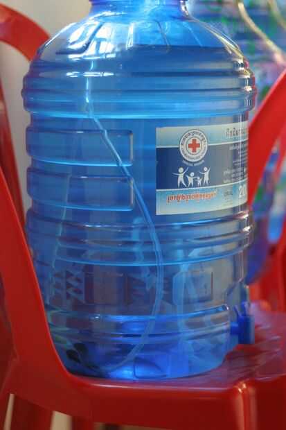 La idea es introducir el aire en el tubo de vinilo en la parte inferior del tanque de agua.