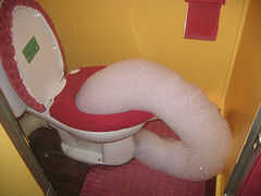 Mi amigo tenía una rueda pinchada cochecito. Como no teníamos ningún kit de parche del tubo lejos, decidimos bomba con la expansión de la espuma. El efecto es espectacular. ;)