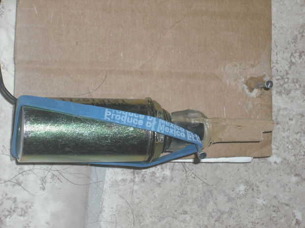 La banda de goma: lo de la goma es que el solonoid no tiene mucho poder. Sería mejor si usted utiliza el nivel de potencia recomendada (24 voltios), pero a menos que desee hacer que una banda de goma es la mejor manera. Envuelve una banda elástica alrededor de la solonoid así tira el perno en el solonoid. Ahora trate de cargarlo. Es muy posible que se disparará a sí mismo sin ayuda de la batería en caso de que usted necesita debilitar a la banda de goma. Otro sabio prueba y fuego de la batería otra vez. Esperemos que va a funcionar, pero si no se necesita reforzar la goma. Sólo mantenga tratando diferentes gomas estiradas diferentes cantidades hasta se trabaja. Sólo tienes que odias a ensayo y error. ¡ Oh bien.
