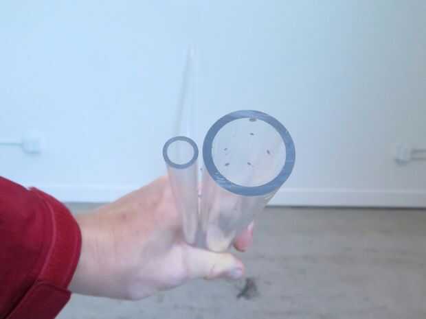 Hacen de diferentes diámetros para resultados muy diferentes. El flaco tubo puede realizarse con un solo dedo y un tamaño medio permite levantar una gran cantidad de agua muy rápido. Después de que termines con esto, pasar al tratar de hacer un tipo diferente de bomba. Claramente, todos fundamentalmente funcionan de esta misma manera.