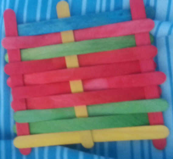 esto es como la bomba de palo de paleta triangular enviado antes. Éste es más difícil de hacer y utiliza 1 palito más (6).Paso 1: Fácil parte 1. a colocar 3 palitos.Paso 2: Fácil parte 2. Seguir la imagen.Paso 3: Parte media Seguir la imagen, otra ve