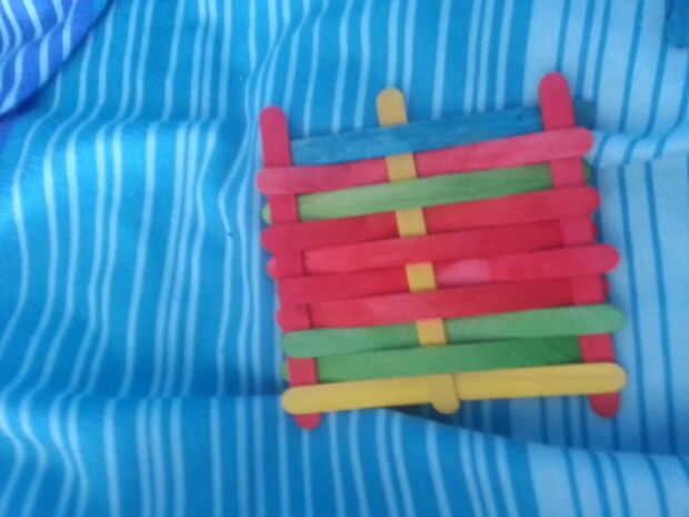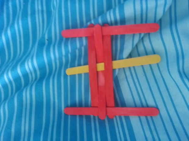 esto es como la bomba de palo de paleta triangular enviado antes. Éste es más difícil de hacer y utiliza 1 palito más (6).Paso 1: Fácil parte 1. a colocar 3 palitos.Paso 2: Fácil parte 2. Seguir la imagen.Paso 3: Parte media Seguir la imagen, otra ve