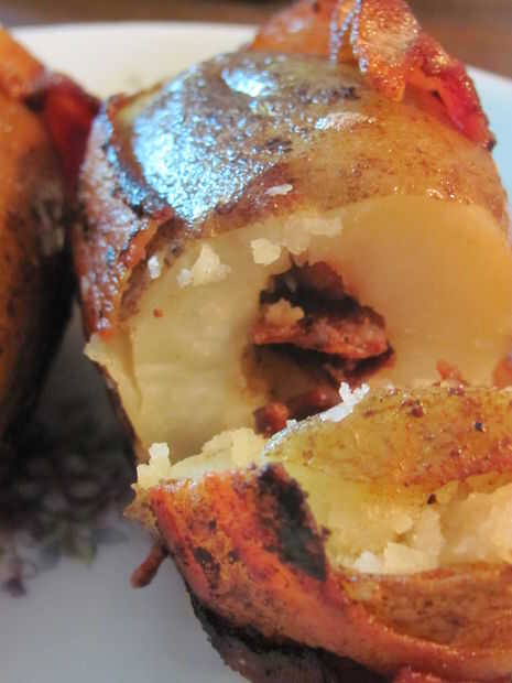 el complemento perfecto para cualquier barbacoa, la bomba de patata lleva Papa al horno a un nivel completamente nuevo!Ingredientes:patatas (por supuesto!)queso ralladorebanadas pastramien lonchas de CecinaSalchichón en lonchascebolla roja picadapimi