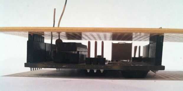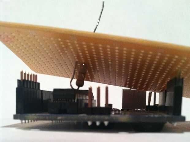 Corte su perfboard con una dremel o sierra para metales para que quepa dentro de su caja de proyecto. Comenzar a soldar el circuito en perfboard una vez que se han probado en un protoboard. Decidí añadir cabeceras masculinos a mi perfboard así puedo conectar el tablero en el Arduino, en lugar de enchufar los cables en el Arduino. Creo que es un proyecto mucho mejor en general. El diseño del circuito se deja a usted, pero he dejado unas cuantas fotos de mi diseño si usted necesita un poco de inspiración. También, si usted elige utilizar cabeceras masculinas, asegúrese de que los componentes no bloqueen el Arduino de conectar en el circuito. Si no está seguro acerca de esto, o cualquier otra cosa, se refieren a los cuadros.