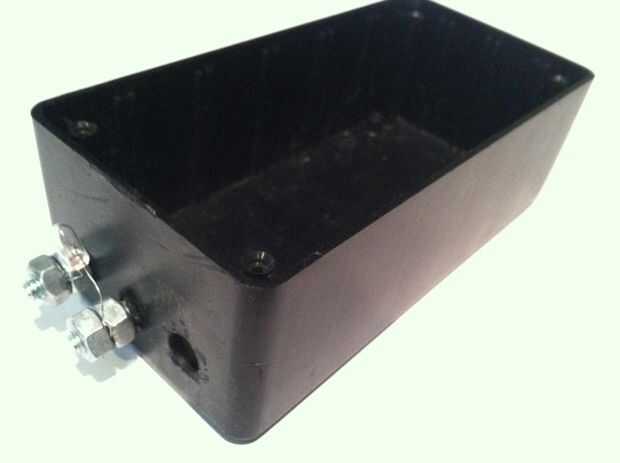 usé una 5 "x 2,5" x 2 "cuadro de proyecto para mi gabinete. Tres agujeros perforados en uno de los lados - dos para los tornillos que la luz incandescente y una para alimentar el Arduino. Tenga en cuenta que no es necesario para usar los tornillos de la luz - puede utilizar postes, gatos de plátano o cualquier cosa que crees que funcionaría bien. Taladré un agujero para el interruptor en la parte superior, y corte un rectángulo de la pantalla LED con mi dremel. Usted tendrá que seleccionar la broca tamaños basados en los componentes que utiliza.