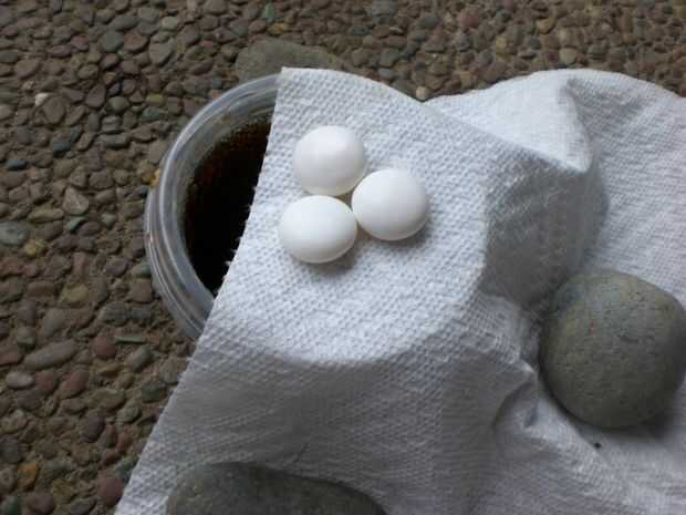 Para asegurarse de que se enseña la toalla de papel, lugar de las rocas en todas las esquinas que están sobre el terreno. Coloque tres mentos en la parte superior de la toalla de papel... Ahora no importa si la toalla de papel se moja, sólo importa si los mentos no se mojan. (ver imagen)