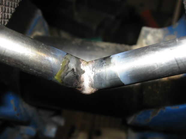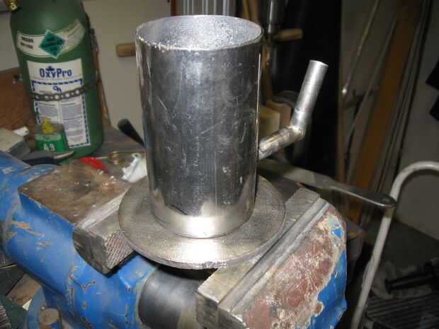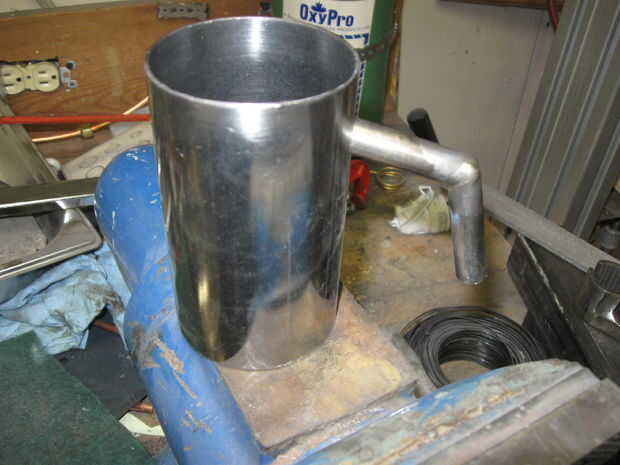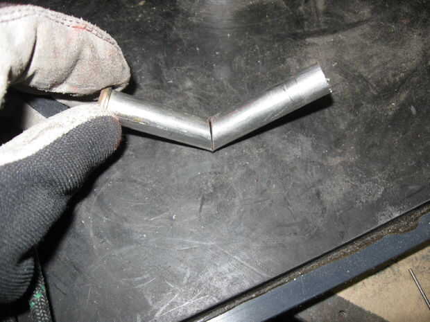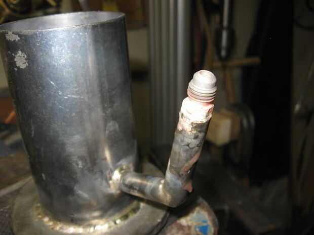 He utilizado un tubo de 1/2 pulgada, corte un soldado juntos en un punto de 45 grados luego soldado al cuerpo de la bomba.