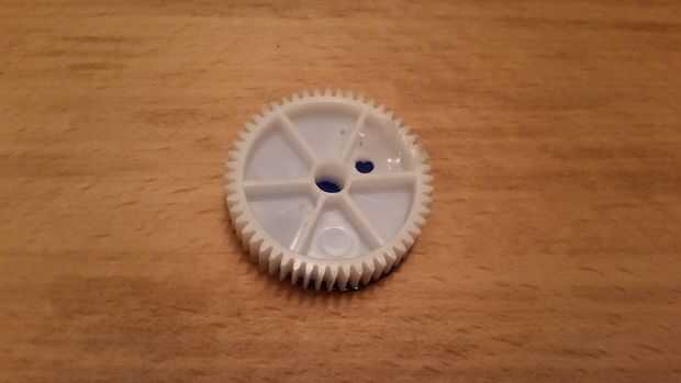 Tome un pedazo de plástico y un engranaje y encolarlos.