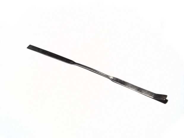 7) algún tipo de dispositivo plano para. Un químico utilizándose una espátula químico, que funcionó a la perfección para rascar.