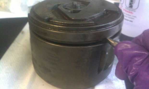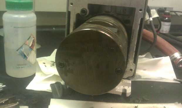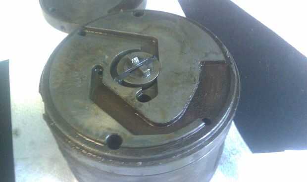 Ahora volviendo al cuerpo de bomba cilíndrica. Quitar los 2 tornillos que se indica en el cuadro 3. Ahora dependiendo de lo sucio o lo que es no la bomba de aceite, la 2ª etapa se caiga solo, o puede tomar algo de trabajo. En mi caso a pesar de que estaba sucio como diablos sólo salió. Si requiere un trabajo, mirando el cilindro verás tres costuras en el cilindro. Estas son realmente las secciones separadas. Aparece la primera y más cercana a los pernos parece ser la bomba de aceite. El segundo, llegar más lejos es el 2 º ciclo de la bomba, y el tercero es la primera etapa de la bomba.