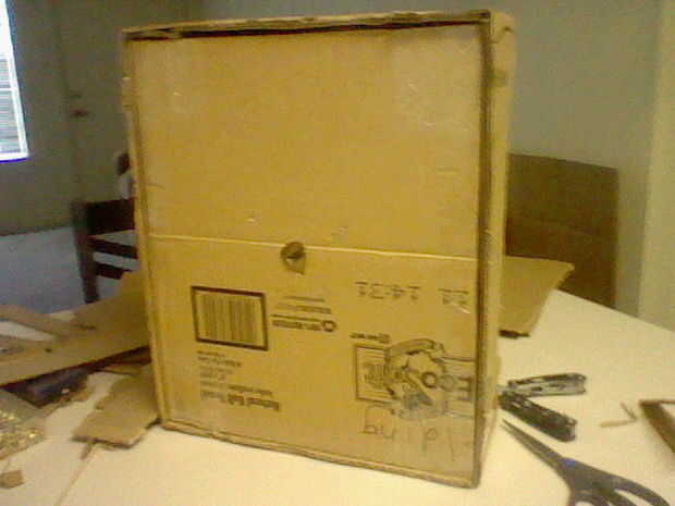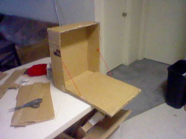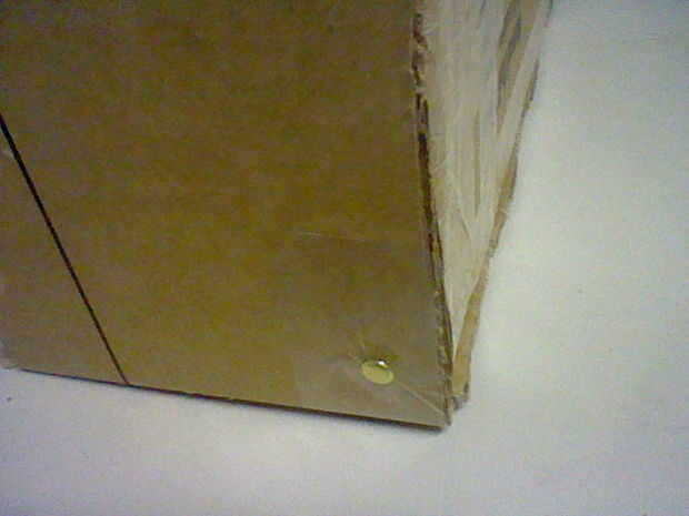 Para hacer las bisagras de la puerta, tomé algunos clavitos y dos mitades de un pincho, grabado em juntos y consiguió lo que se muestra en la primera foto. Para colocar las bisagras, colocar la puerta en la abertura del cuerpo, mantener el pasador de pincho dentro de la puerta. Si no puede girar la cerradura, entonces puede hacer la llave antes de llegar a esta parte. De todas formas, hacer un pequeño agujero a cada lado del cuerpo donde las bisagras se pretenden ir. Usted debe ser capaz de conseguir las bisagras en la puerta con un poco de trabajo. Poner que alguna cadena depende de los lados para que la puerta no se abre en demasiado de un ángulo, si fuera necesario. Por último pero no menos importante, corte una ranura en la parte superior del cuerpo para que la brocheta puede impedir que la puerta de apertura.